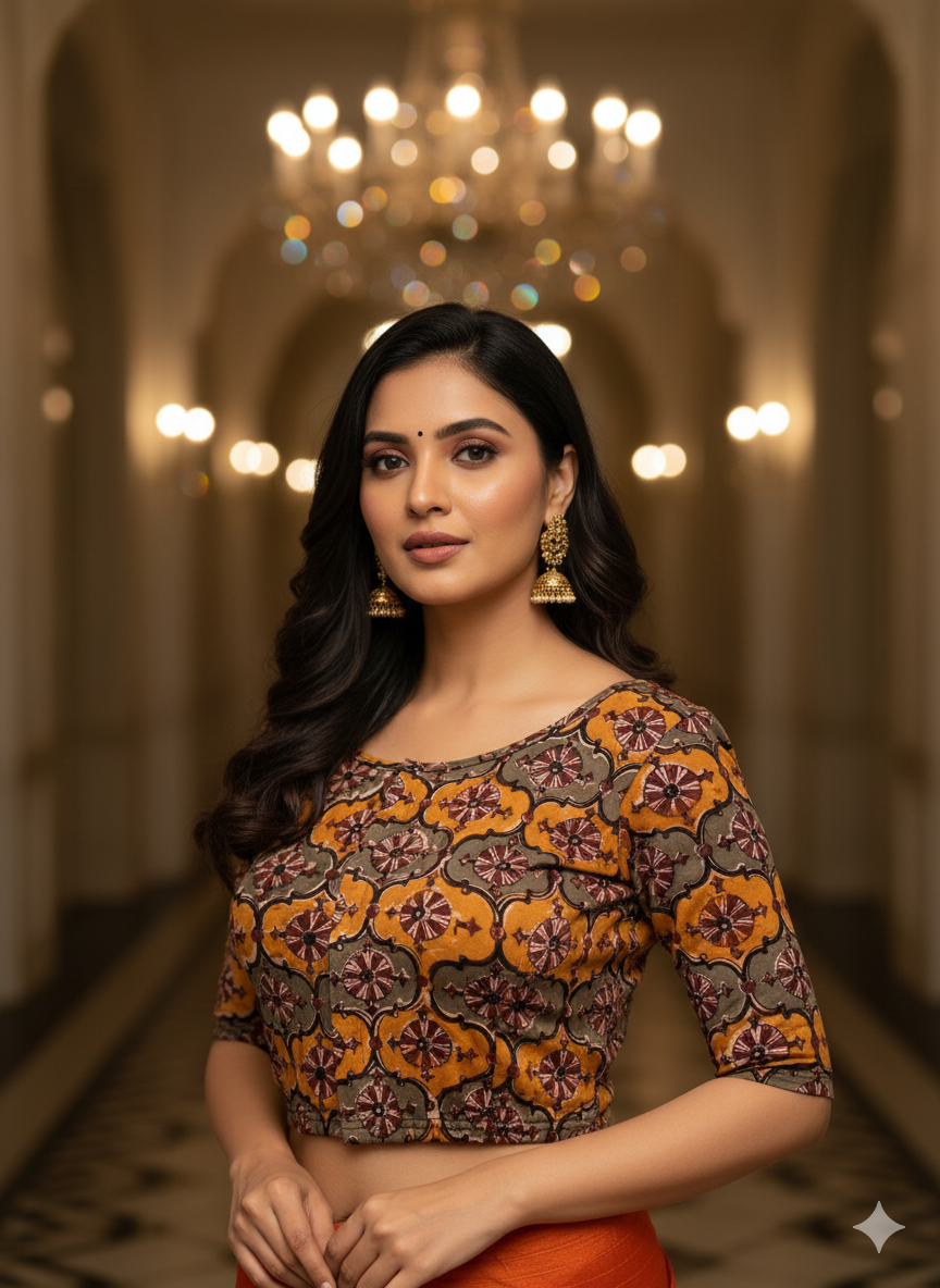 360° stretchable handcrafted Kalamkari blouse made with pure cotton ensures ultimate comfort and freedom of...