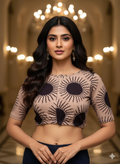 Champagne Beige Round Neck Cotton Stretchable Kalamkari Blouse
