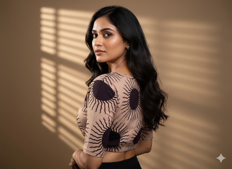 360° stretchable handcrafted Kalamkari blouse made with pure cotton ensures ultimate comfort and freedom of movement. Hand-printed with organic, chemical-free colors, the traditional Kalamkari block prints celebrate heritage artistry while being sustainable and eco-friendly. Stylish and trendy across generations, this blouse’s colors enhance beautifully with time when washed gently with non-chemical soaps, making each wear more vibrant. A timeless piece that combines craftsmanship, sustainability, and contemporary elegance for versatile styling.
