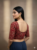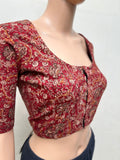 Cherry Red Round Neck Cotton Stretchable Kalamkari Blouse