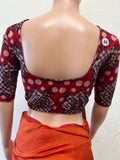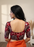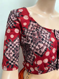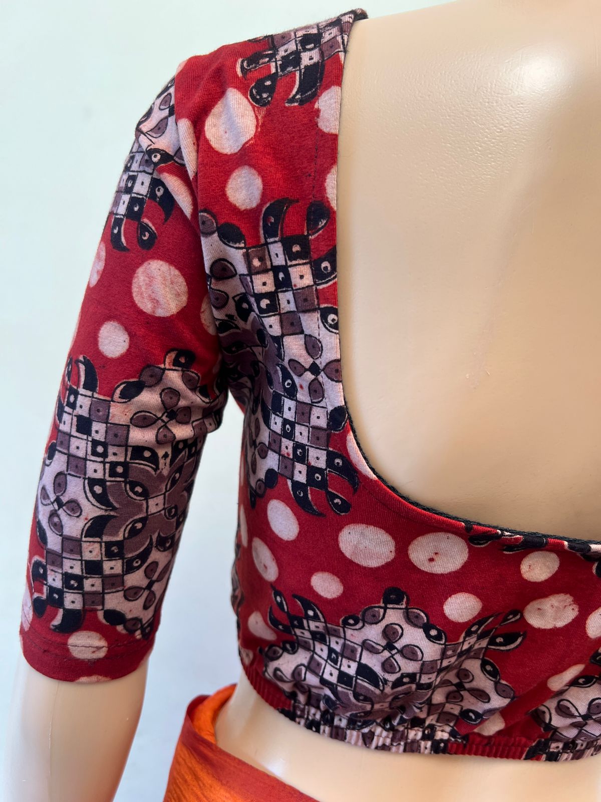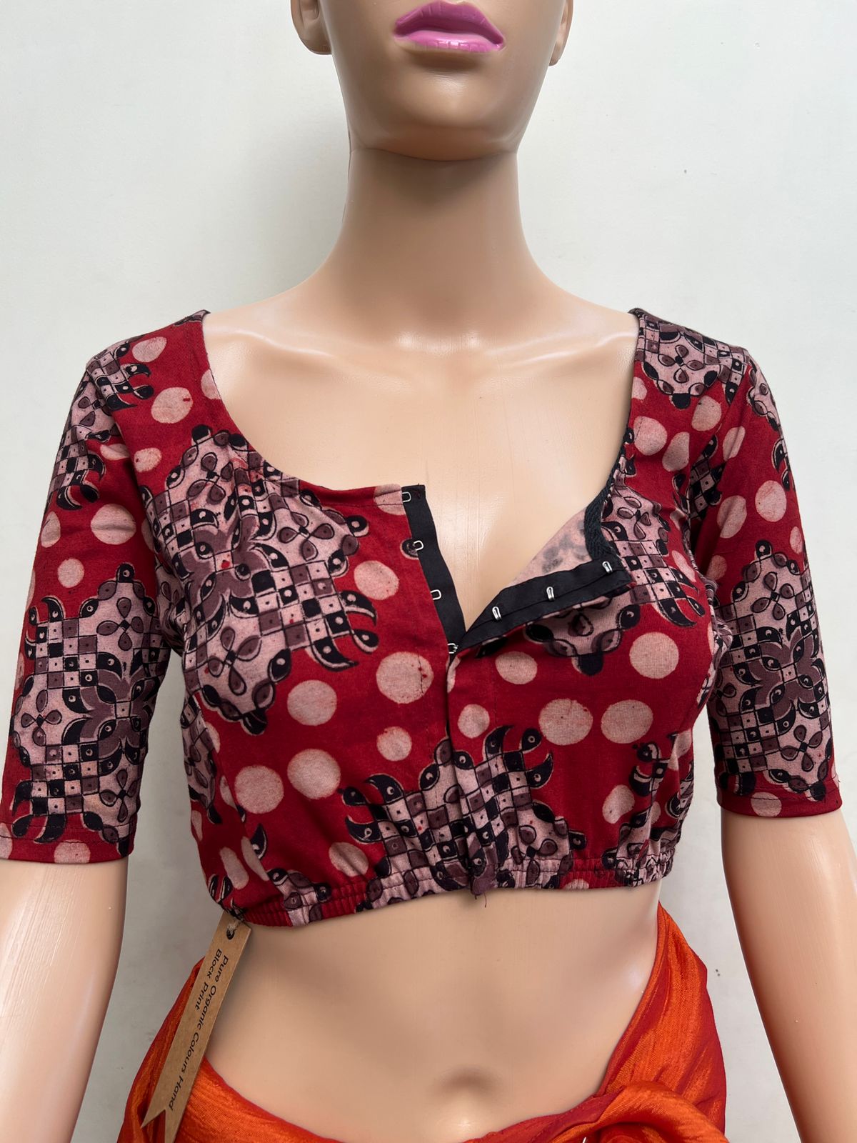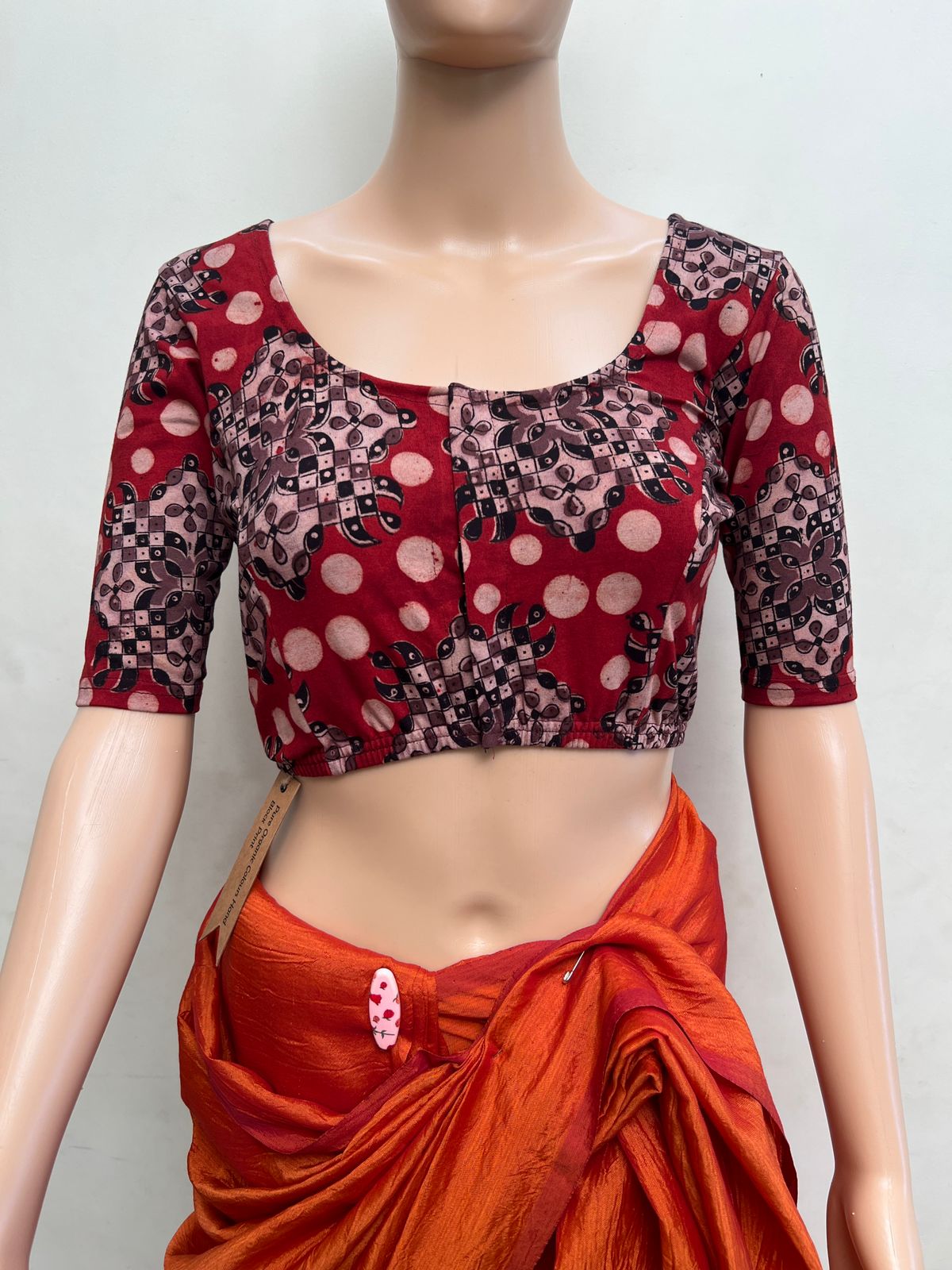 Garnet Red U Neck Cotton Stretchable Kalamkari Blouse