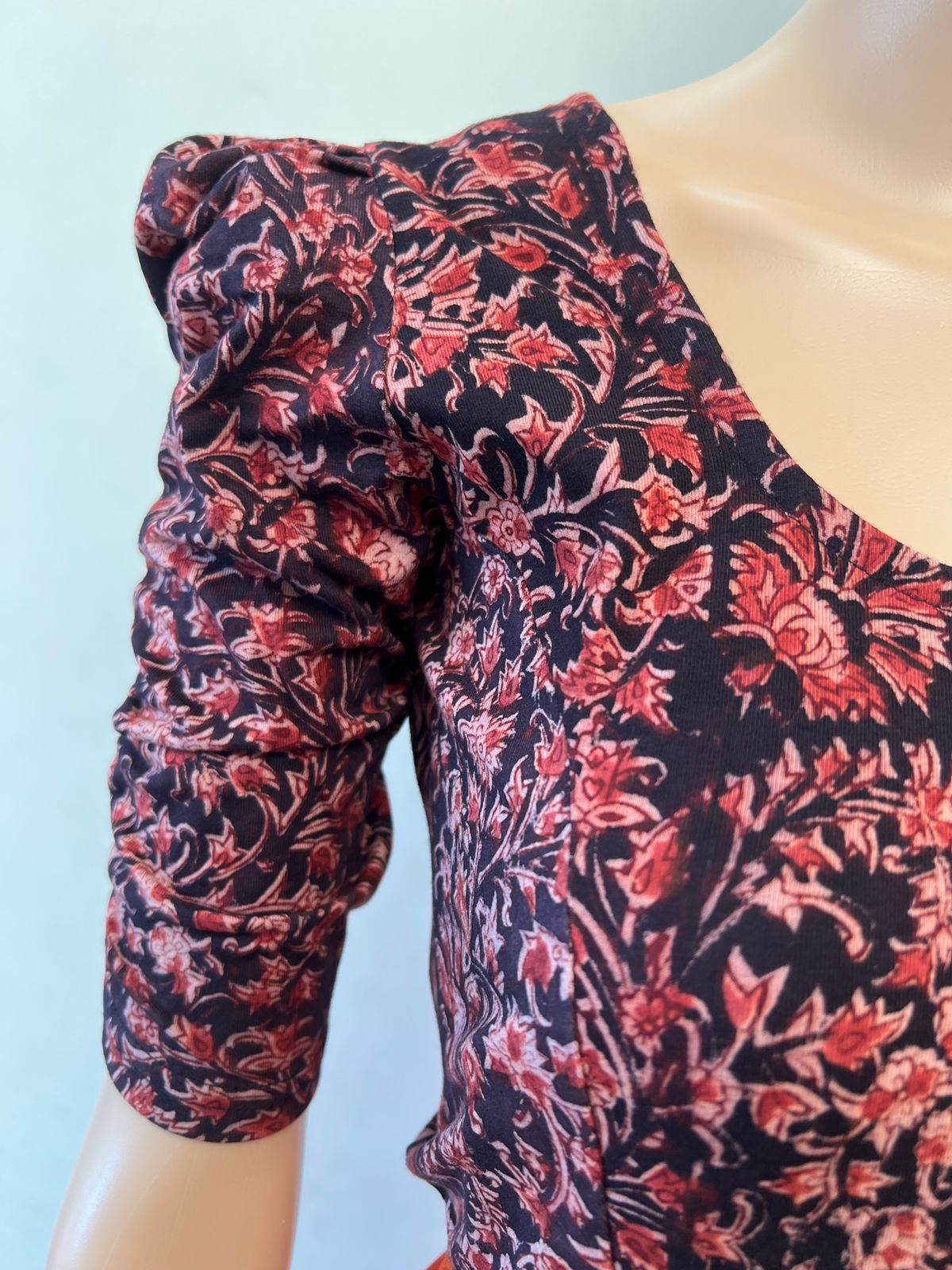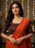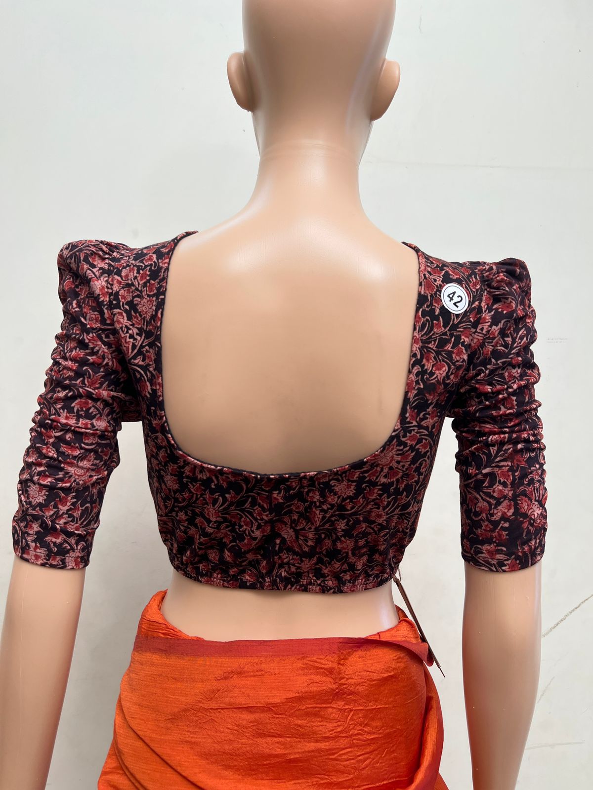 360° stretchable handcrafted Kalamkari blouse made with pure cotton ensures ultimate comfort and freedom of movement. Hand-printed with organic, chemical-free colors, the traditional Kalamkari block prints celebrate heritage artistry while being sustainable and eco-friendly. Stylish and trendy across generations, this blouse’s colors enhance beautifully with time when washed gently with non-chemical soaps, making each wear more vibrant. A timeless piece that combines craftsmanship, sustainability, and contemporary elegance for versatile styling.