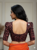 Ink Black Round Neck Cotton Stretchable Kalamkari Blouse