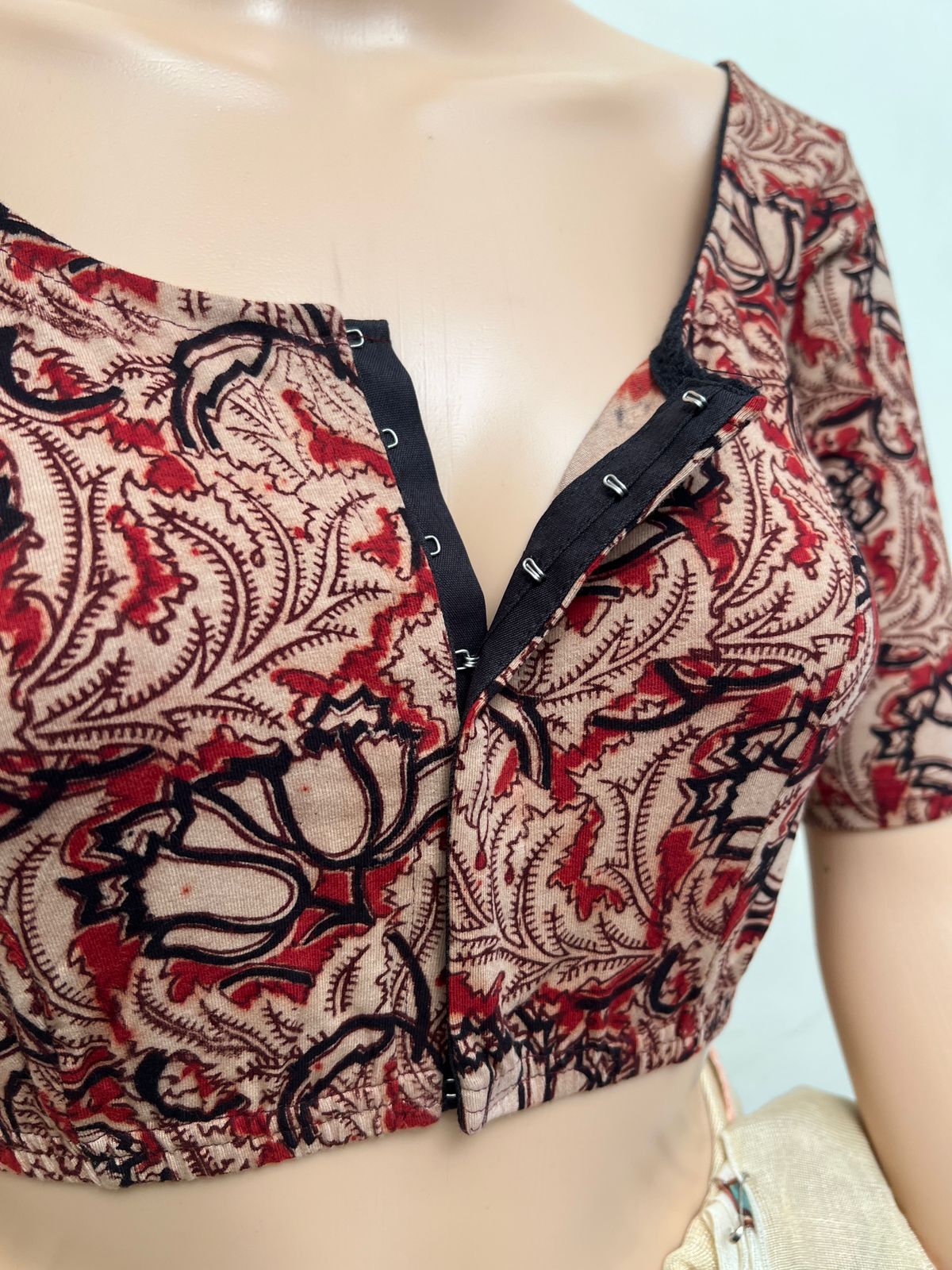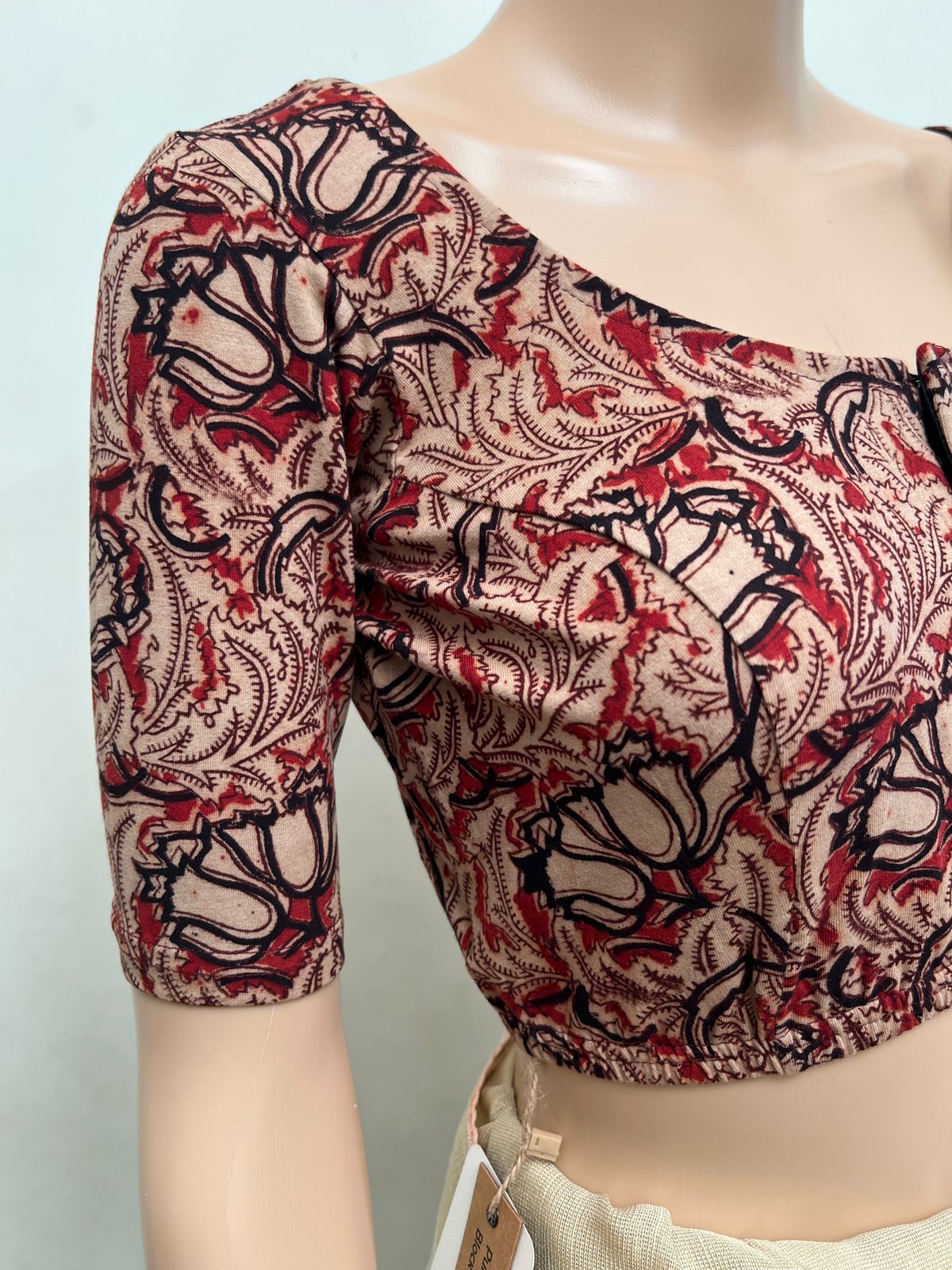 Maroon Round Neck Cotton Stretchable Kalamkari Blouse