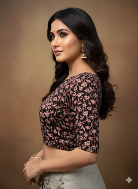 360° stretchable handcrafted Kalamkari blouse made with pure cotton ensures ultimate comfort and freedom of movement. Hand-printed with organic, chemical-free colors, the traditional Kalamkari block prints celebrate heritage artistry while being sustainable and eco-friendly. Stylish and trendy across generations, this blouse’s colors enhance beautifully with time when washed gently with non-chemical soaps, making each wear more vibrant. A timeless piece that combines craftsmanship, sustainability, and contemporary elegance for versatile styling.