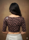 Black Boat Neck Cotton Stretchable Kalamkari Blouse