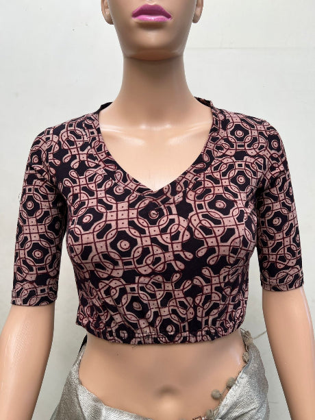 Brown Black V Neck Cotton Stretchable Blouse