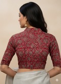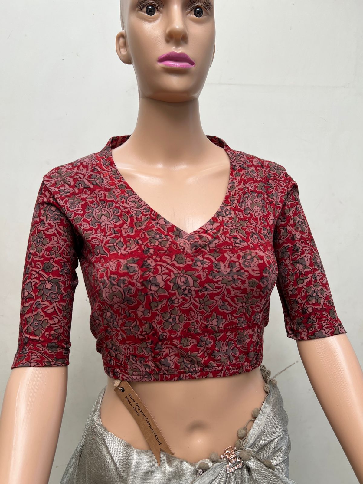 Red V Neck Cotton Stretchable Kalamkari Blouse