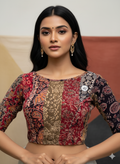360° stretchable handcrafted Kalamkari blouse made with pure cotton ensures ultimate comfort and freedom of movement. Hand-printed with organic, chemical-free colors, the traditional Kalamkari block prints celebrate heritage artistry while being sustainable and eco-friendly. Stylish and trendy across generations, this blouse’s colors enhance beautifully with time when washed gently with non-chemical soaps, making each wear more vibrant. A timeless piece that combines craftsmanship, sustainability, and contemporary elegance for versatile styling.