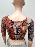Multi Coloured Boat Neck Cotton Stretchable Kalamkari Blouse