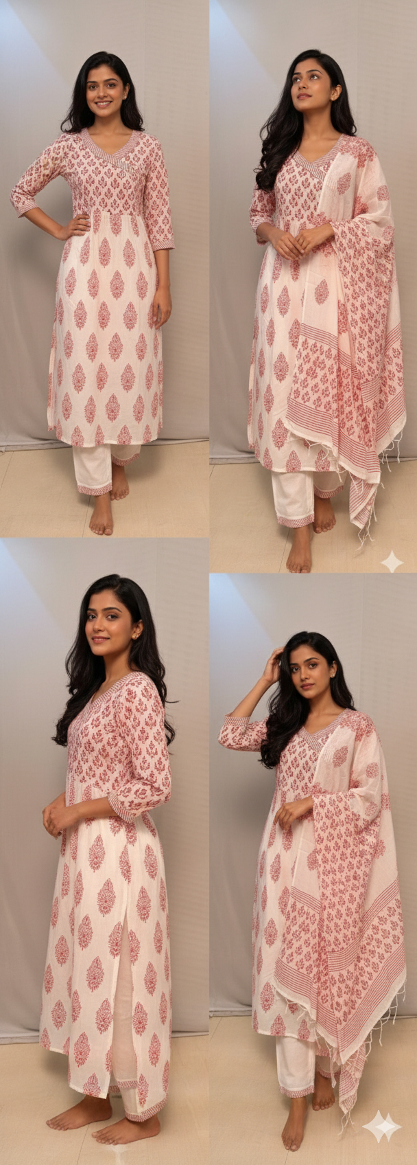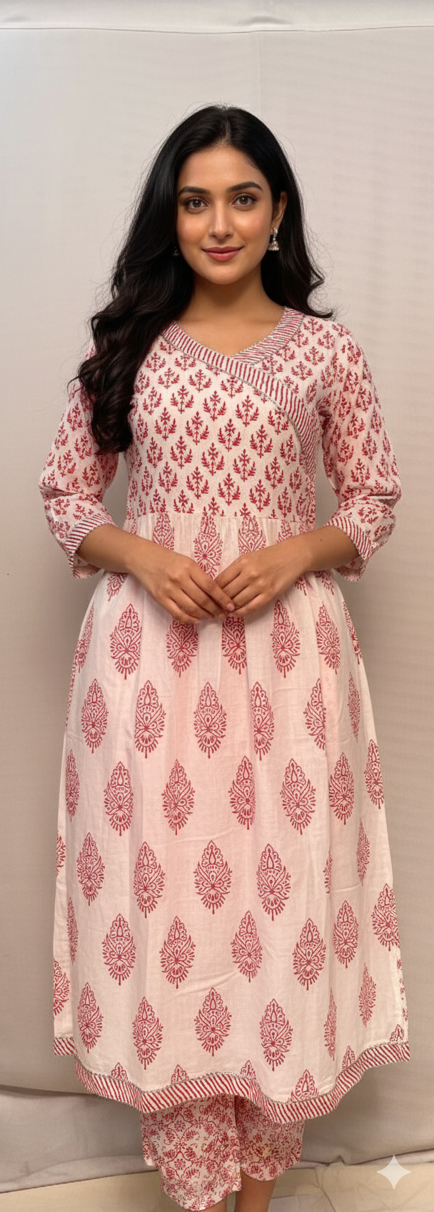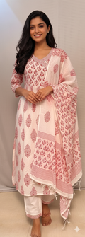This white & red printed kurti set is a perfect blend of grace and comfort. Made from soft, breathable fabric, it features vibrant prints that enhance its charm. Paired with matching pants and a lightweight dupatta, it’s ideal for festive, office, or casual outings.
