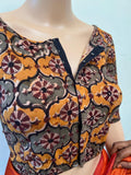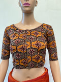 360° stretchable handcrafted Kalamkari blouse made with pure cotton ensures ultimate comfort and freedom of movement. Hand-printed with organic, chemical-free colors, the traditional Kalamkari block prints celebrate heritage artistry while being sustainable and eco-friendly. Stylish and trendy across generations, this blouse’s colors enhance beautifully with time when washed gently with non-chemical soaps, making each wear more vibrant. A timeless piece that combines craftsmanship, sustainability, and contemporary elegance for versatile styling.